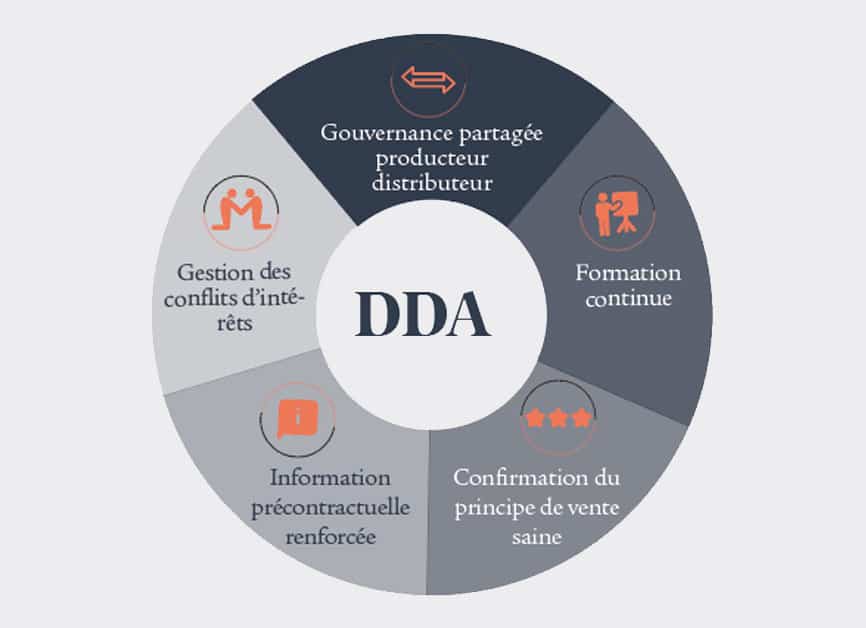 Innovation majeure, elle ne s’appliquera plus uniquement aux intermédiaires, mais également à la vente directe réalisée par les assureurs, ce qui constitue un élément d’unification du cadre réglementaire. La directive, qui pose le principe général selon lequel tout distributeur d’assurance doit agir de manière honnête, loyale et non trompeuse, en accord avec le meilleur intérêt de ses clients, prévoit de nouvelles modalités, telles qu’une information précontractuelle renforcée, des règles de gouvernance partagées entre le producteur et le distributeur, la confirmation du principe de vente saine, la gestion des conflits d’intérêts et la mise en place d’une formation continue. La DDA pose des principes structurants pour la distribution de contrats d’assurance, tout en reconnaissant des spécificités nationales fortes. Des actes délégués sont préparés en parallèle par l’EIOPA.